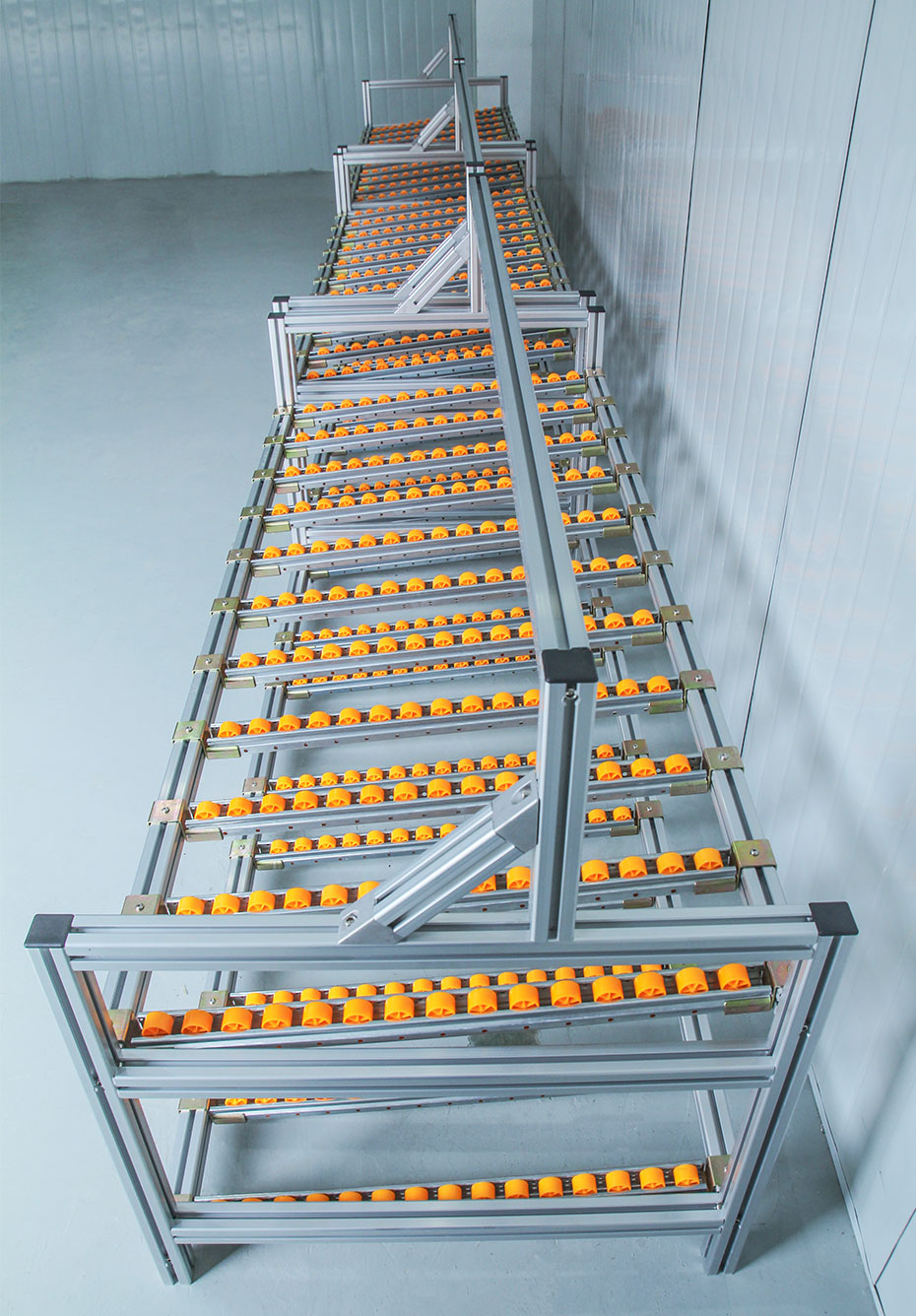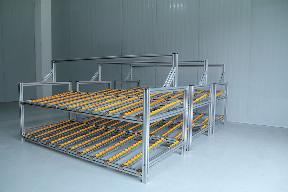 流利式貨架又稱滑移式貨架,采用鋁合金,鈑金等流利條,利用貨物臺架的自重,從一邊通道存貨,另一邊通道取貨實現先進先出,存儲方便,以及一次補貨多次取貨。流利架存儲效率高,適合大量貨物的短期存放和揀選。廣泛應用于制造業、商業、配送中心、裝配車間以及出貨頻率較高的倉庫。使用鋁型材為框架,使用鋁型材為框架,使用壽命長,改造簡便,可隨時隨需擴展結構等特點。